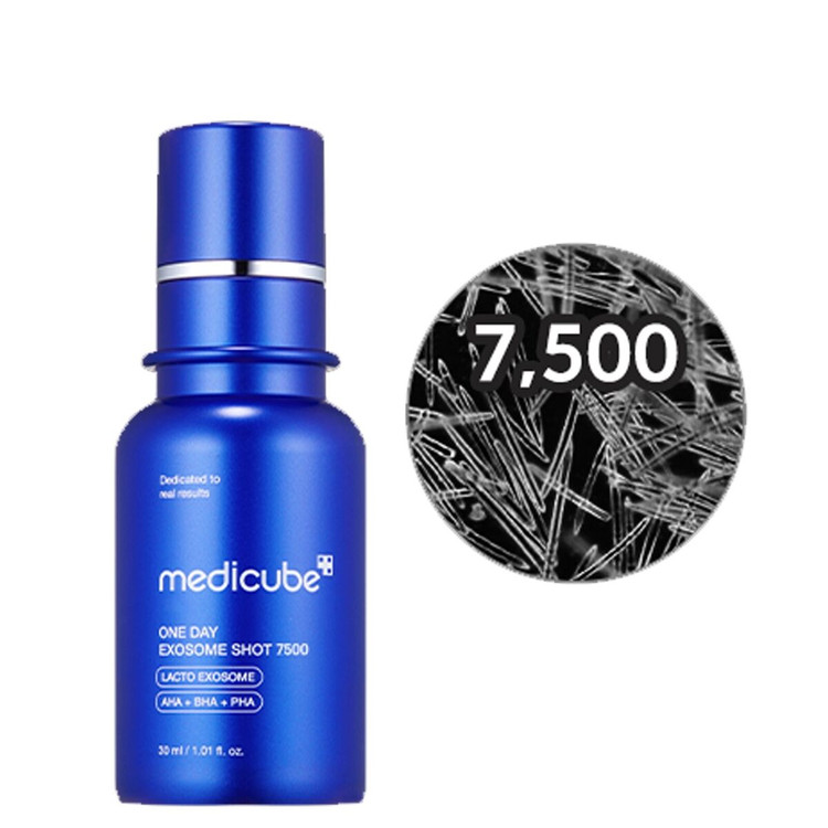 سرم اگزوزوم شات 7500 مدی کیوب medicube One Day Exosome Shot 7500 یک سرم قوی و موثر است که برای بهبود ظاهر پوست و کاهش منافذ طراحی شده است. این محصول حاوی 7500ppm اگزوزوم است که به عنوان ذرات پیام رسان کوچک از سلول های بنیادی استخراج می شوند و به تقویت بازسازی سلولی پوست کمک می کنند.