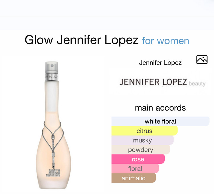 عطر ادکلن جنیفر لوپز ادو گلو-Jennifer Lopez Eau de Glow عطری است خنک و ملایم و شیرین و محصول سال 2002 می باشد و در گروه بویایی رایحه های گلی که عطرهای بسیار جذابی را در خود جای داده است، قرار دارد. و عطار آن لویس ترنر، کاترین والش می باشد . از اسانس های بکار برده شده در این عطر می توان به بهار نارنج، گریپ فروت ، شکوفه پرتقال ، رز ، یاس، گل مریم ، مشک ، کهربا، وانیل ، چوب صندل سفید ، پونه کوهی اشاره کرد.