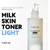 تونر شیر پوست لایت تیرتیر (Milk Skin Toner Light TIRTIR) یکی از محصولات مراقبت از پوست است که با ترکیبات مرطوبکننده و تقویتکنندهای همچون نیاسینامید و سرامید ساخته شده است. این تونر به صورت ویژه برای آبرسانی، بهبود بافت پوست و تقویت سد دفاعی پوست طراحی شده است. استفاده از این محصول برای افرادی که به دنبال حفظ رطوبت پوست و کاهش لکهای تیره هستند، توصیه میشود.