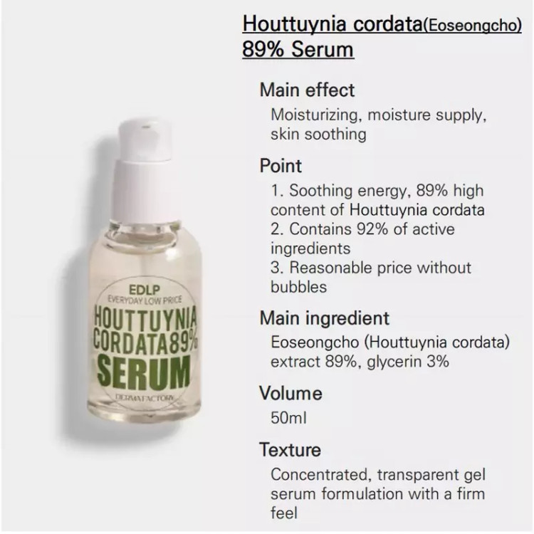 عصاره Eoseongcho (Houttuynia cordata) 89٪، گلیسیرین 3٪