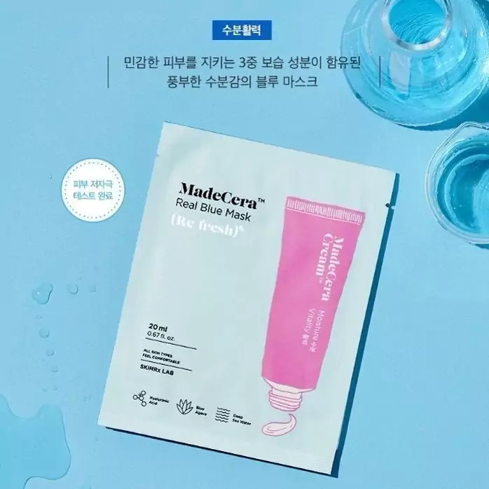 ماسک ورقه ای آبرسان SkinRx مدل Madecera Real Blue حجم 20 میلی لیتر