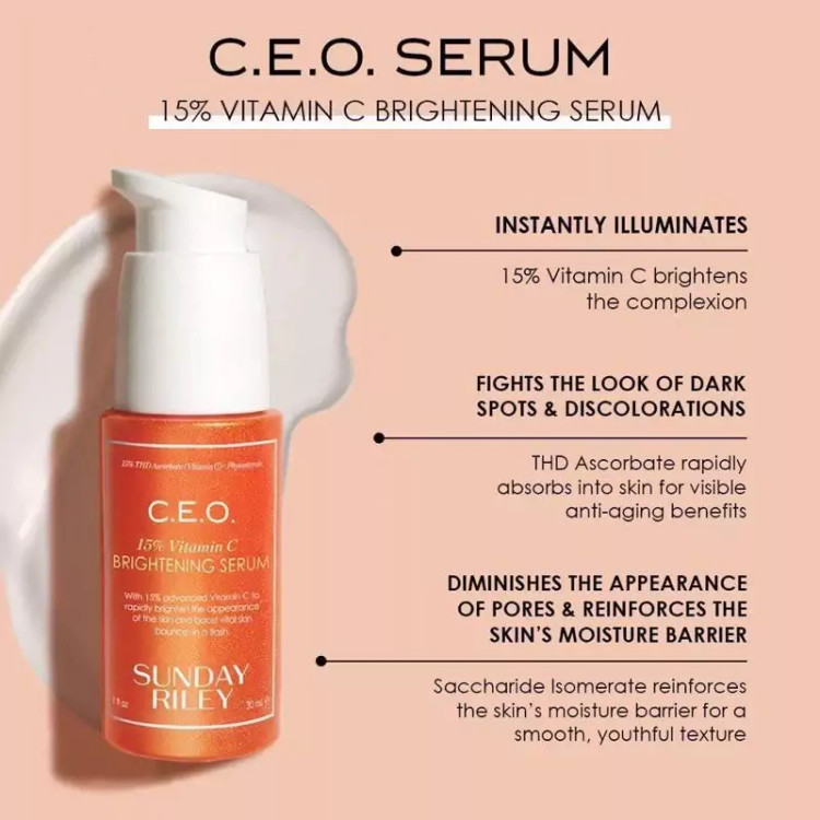سرم ویتامین C ساندی رایلی (Sunday Riley) مدل روشن کننده پوست (CEO 15% Vitamin C Brightning) حجم 30 میلی لیتر
